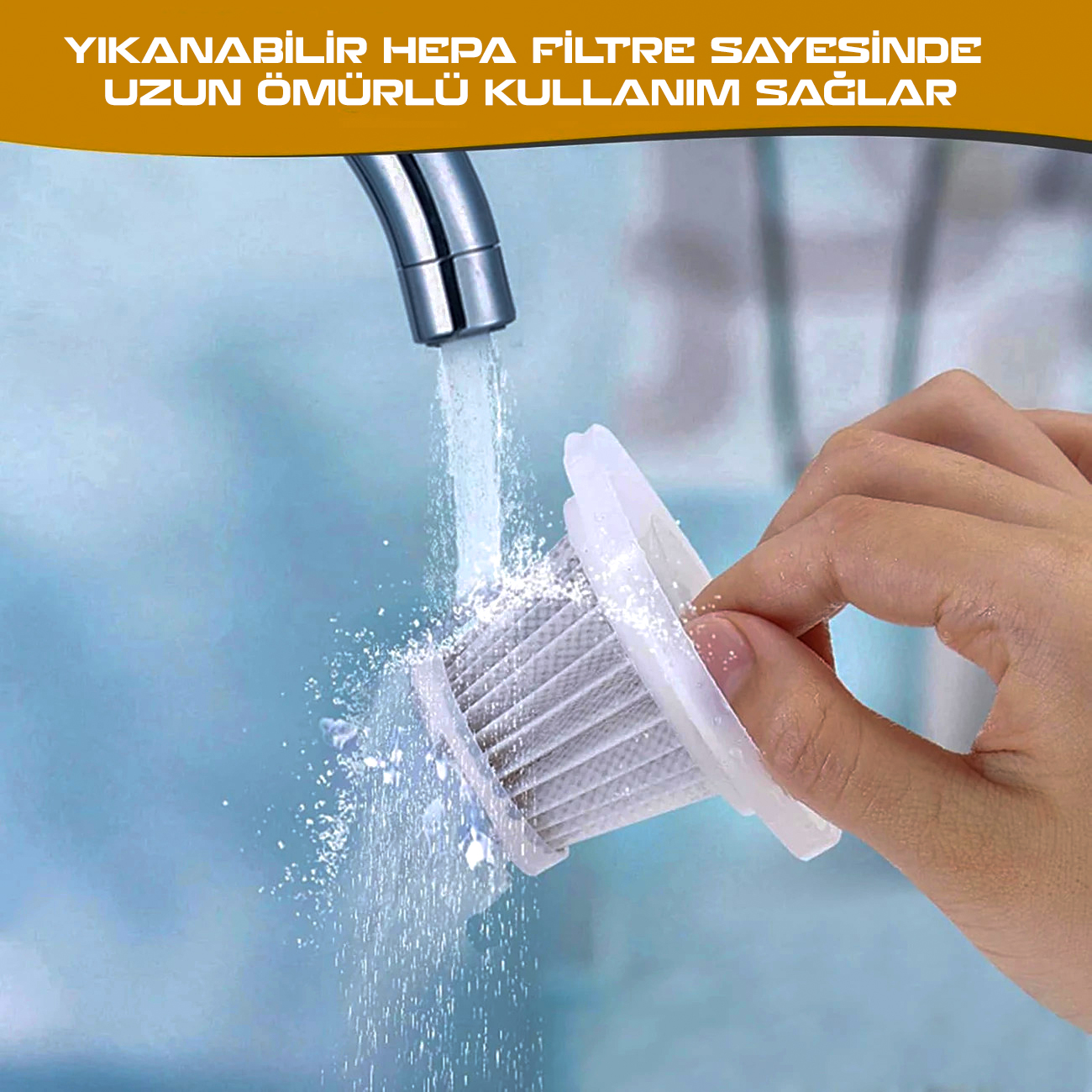 Hem araçlardan hem de evlerden toz,kir ve kalıntıları etkili bir şekilde temizleyen 16000Pa'lık güçlü bir çekim kapasitesi sunar.